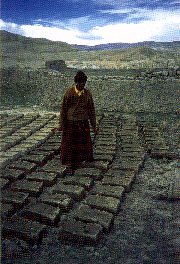 Drying mud-bricks for construction of a new medical building for the Amchi Lama (Doctor of Tibetan Medicine) in Lo Manthang